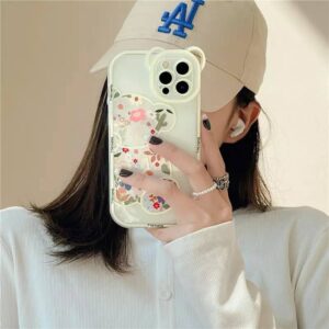 قاب خرس گلدار سفید با ایرپاد ست (کدc1020)