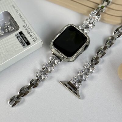 بند اپل واچ فلزی پاپیون کریستالی + گارد نگین دار (کدw5047)