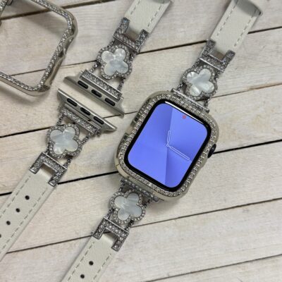 بند اپل واچ چرمی طرح ون کلیف با گارد نگین دار (کدw5067)