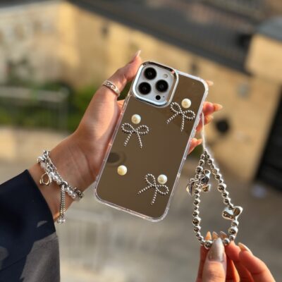 قاب آینه ای پاپیون مرواریدی با آویز (کدC1897)