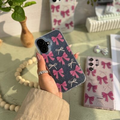 قاب پاپیون صورتی اکلیلی پشت طلق آیفون ، سامسونگ ، شیائومی (کدC1886)