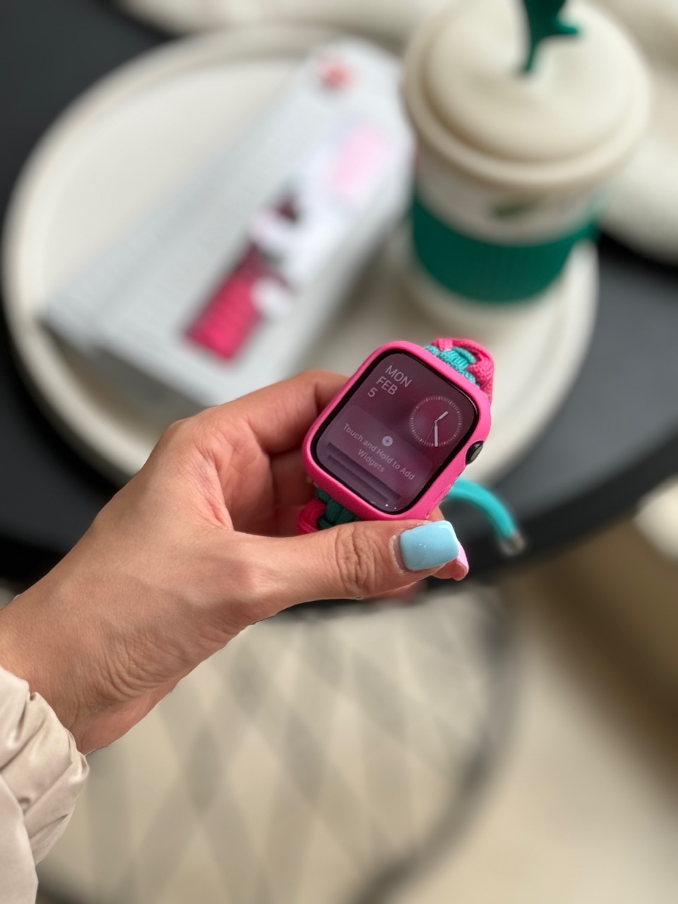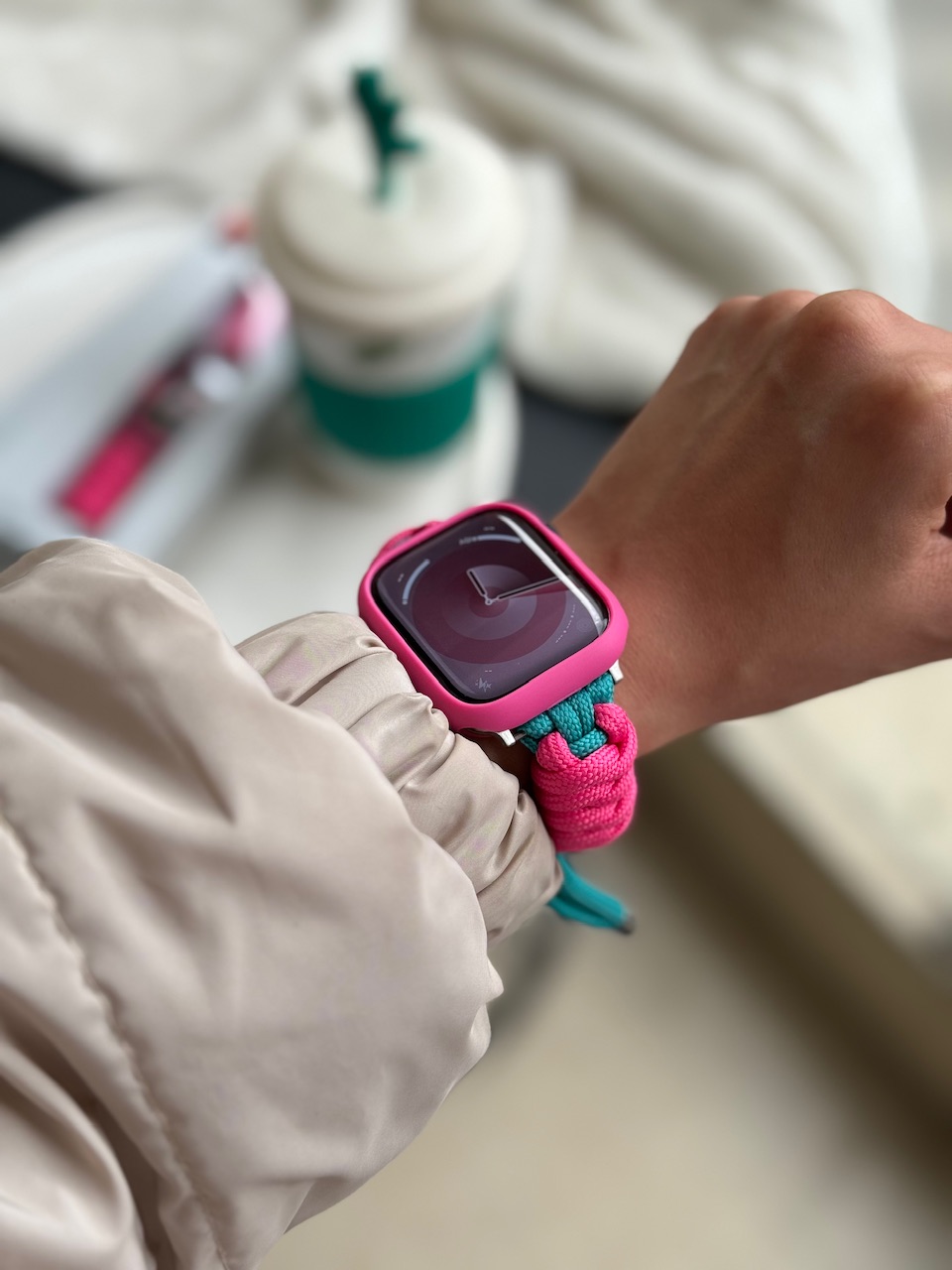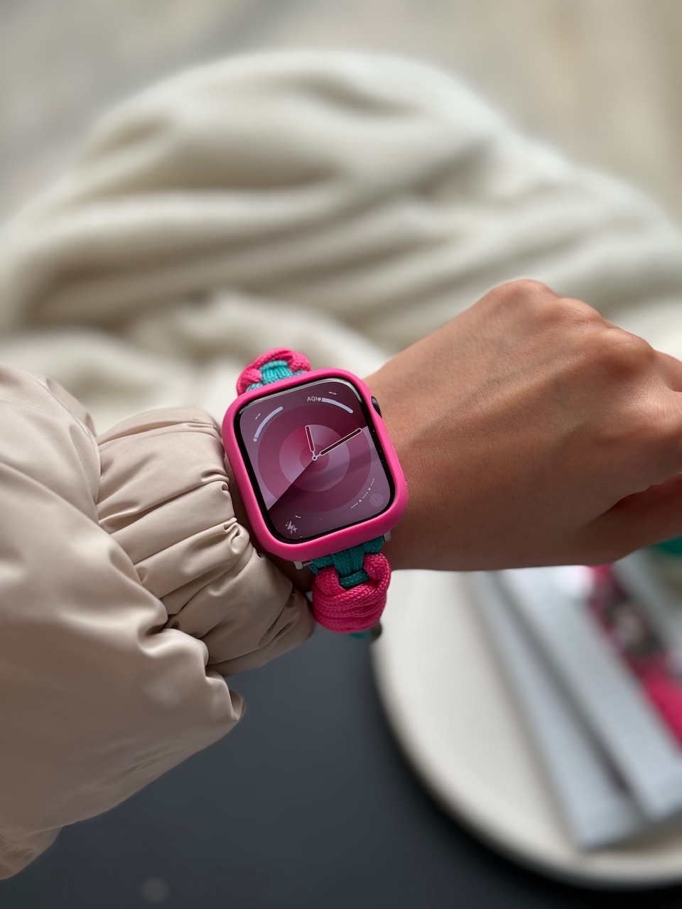 بند اپل واچ بافت کنفی با گارد سرخابی (کدw5009)