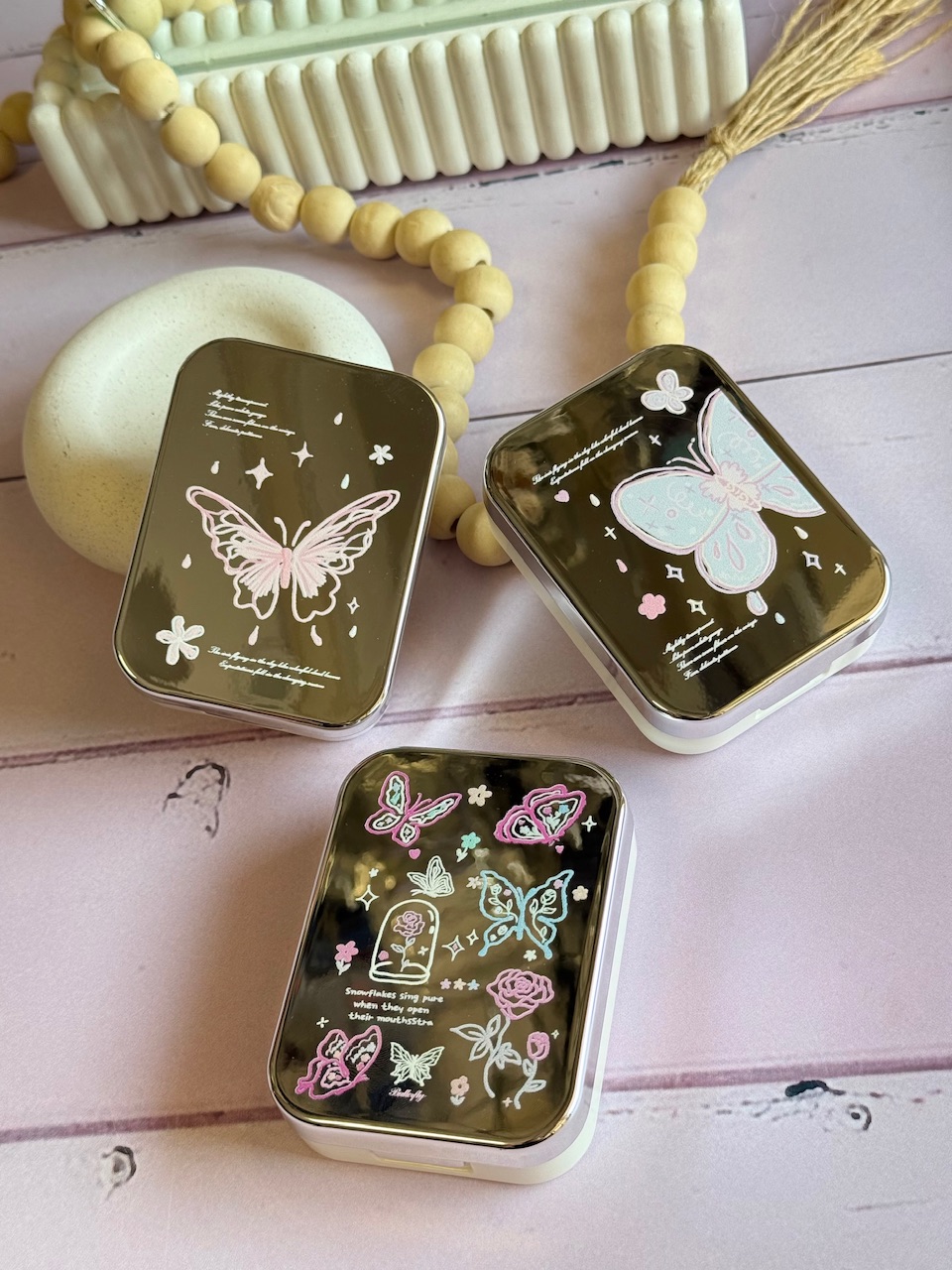 1- پروانه و گل رز, 2- پروانه صورتی تک, 3-پروانه آبی تک |