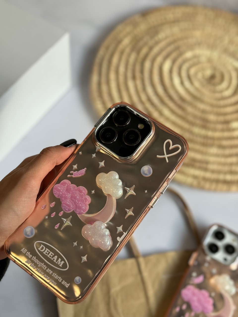 قاب Dream صورتی ابر برجسته آیفونی / قاب گوشی آیفون