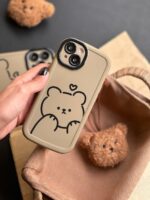 قاب خرس قهوه ای / آیفون / با آویز عروسک پشمی