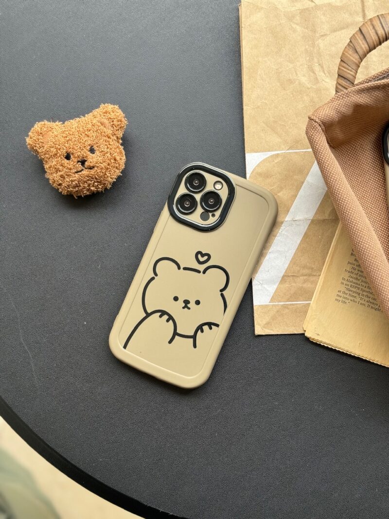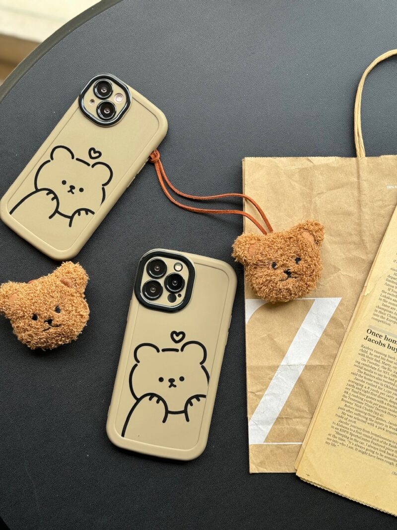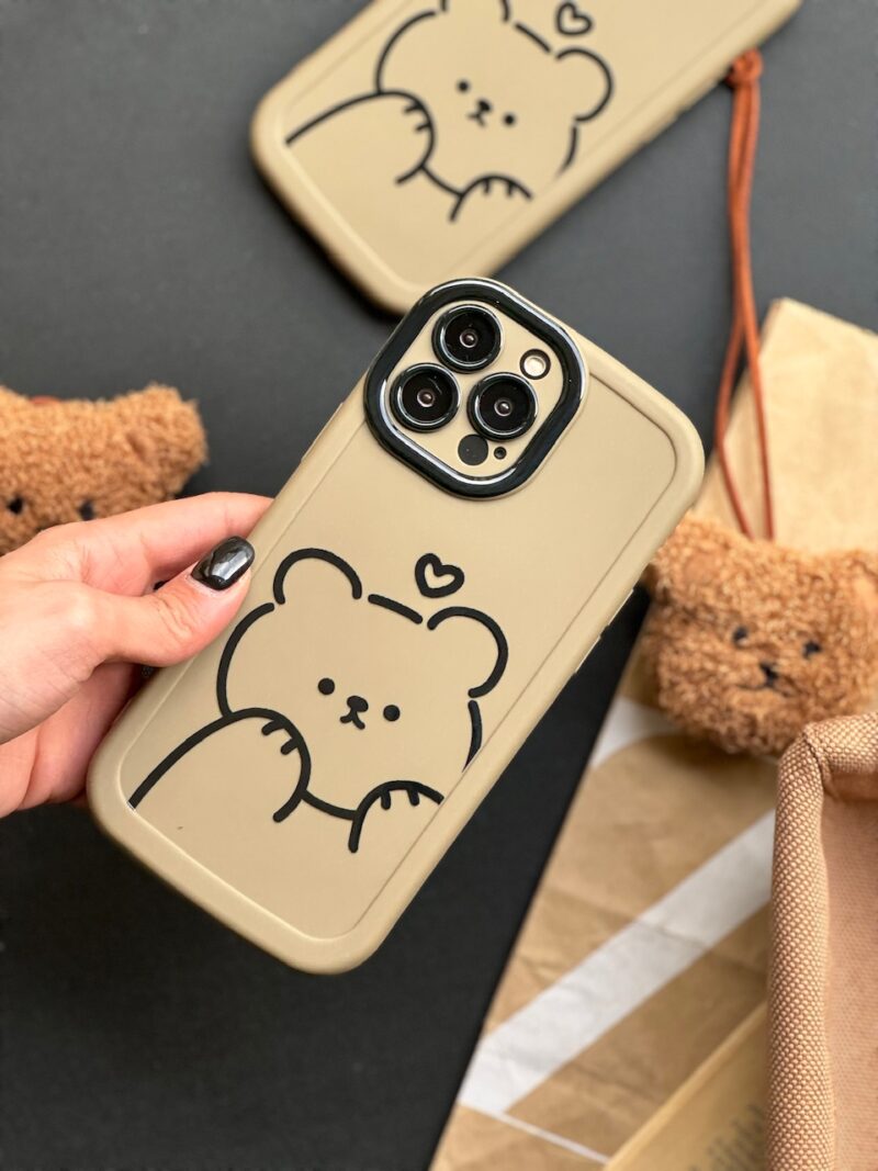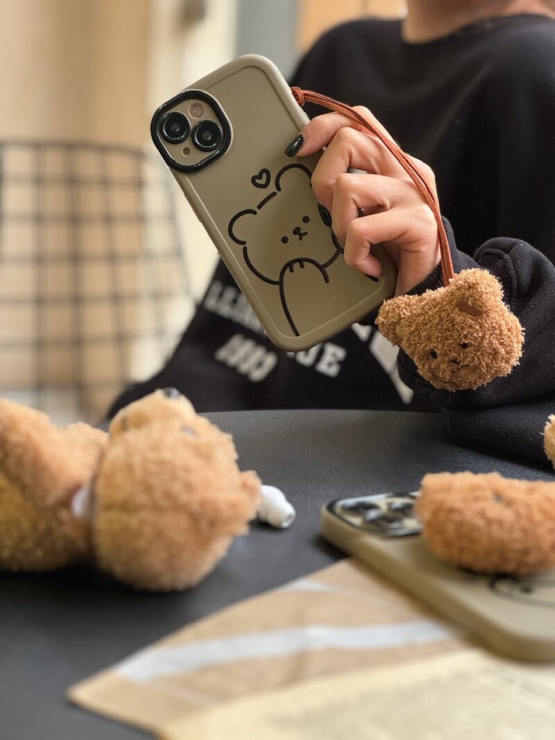 قاب خرس قهوه ای / آیفون / با آویز عروسک پشمی