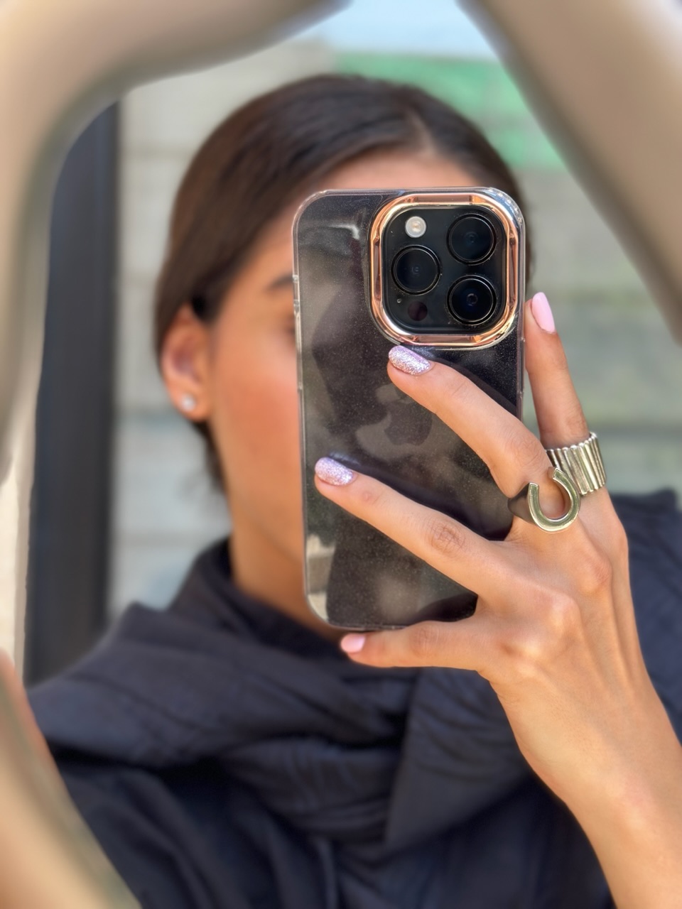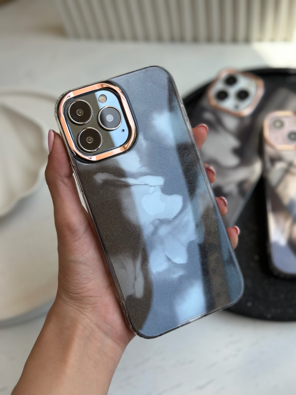 قاب شاین دار شفاف / دور لنز طلایی / کیفیت عالی / قاب آیفون