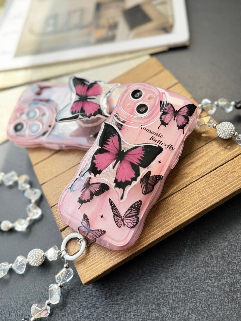 قاب پروانه رومانتیک صورتی با آویز (کدC1807)