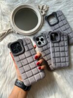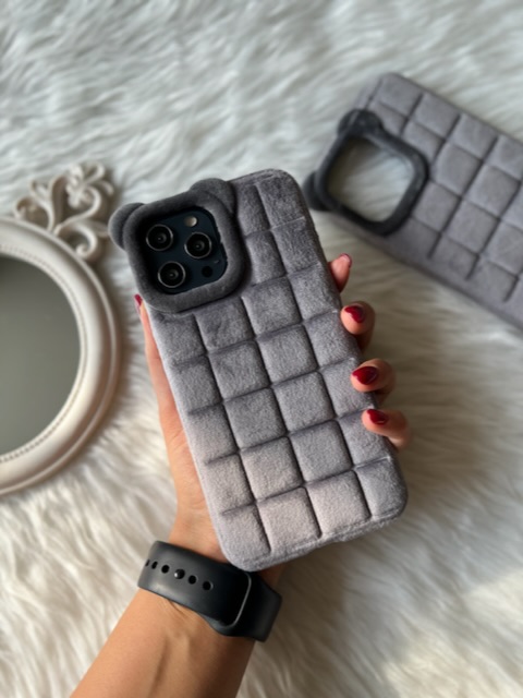قاب پشمی طوسی / گوش دار/ مخصوص گوشی های آیفون / قاب گوشی