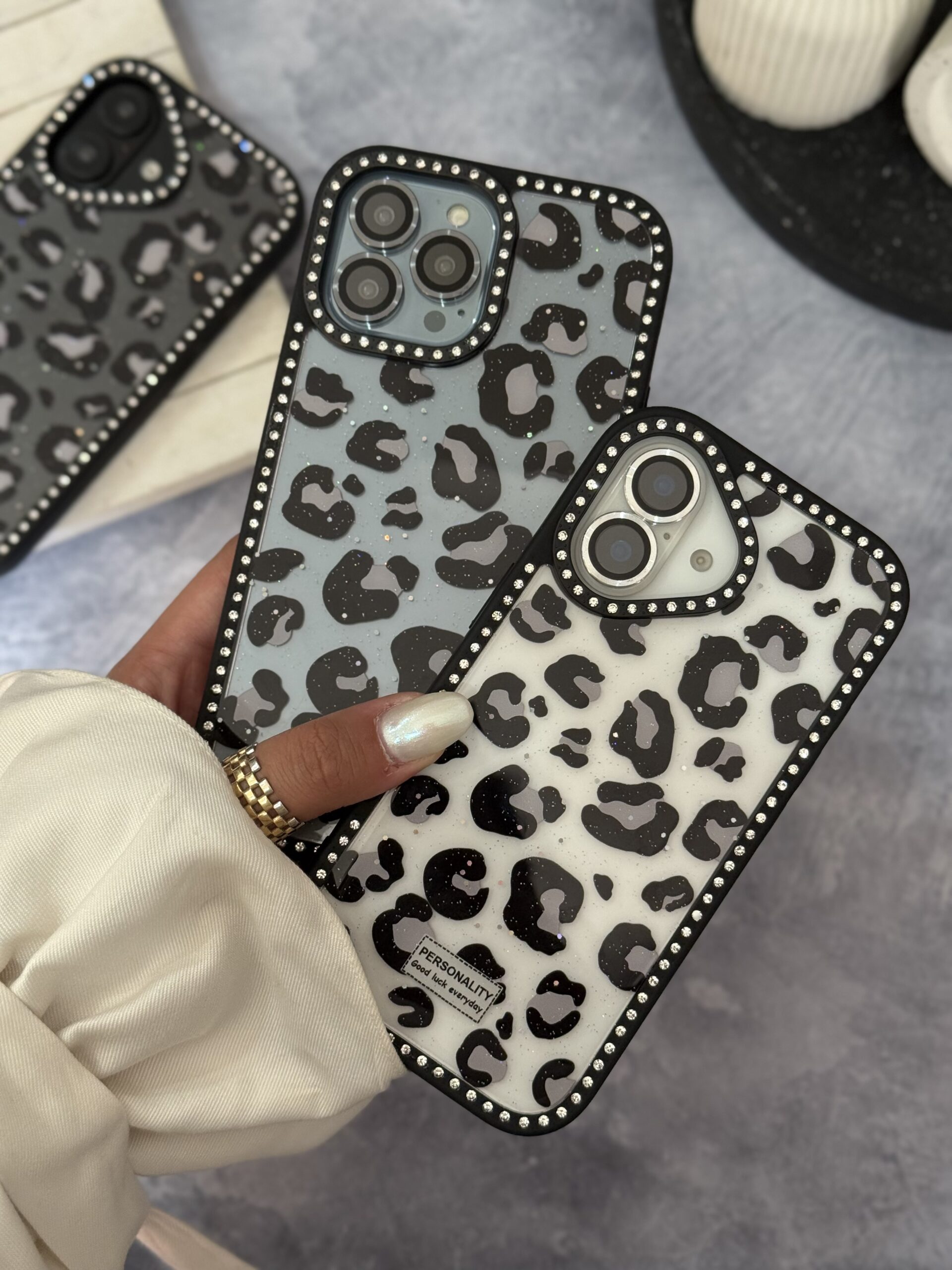 پشت طلقی / نگین دار / زمینه شاینی / قاب آیفون / دراپشیپینگ قاب موبایل