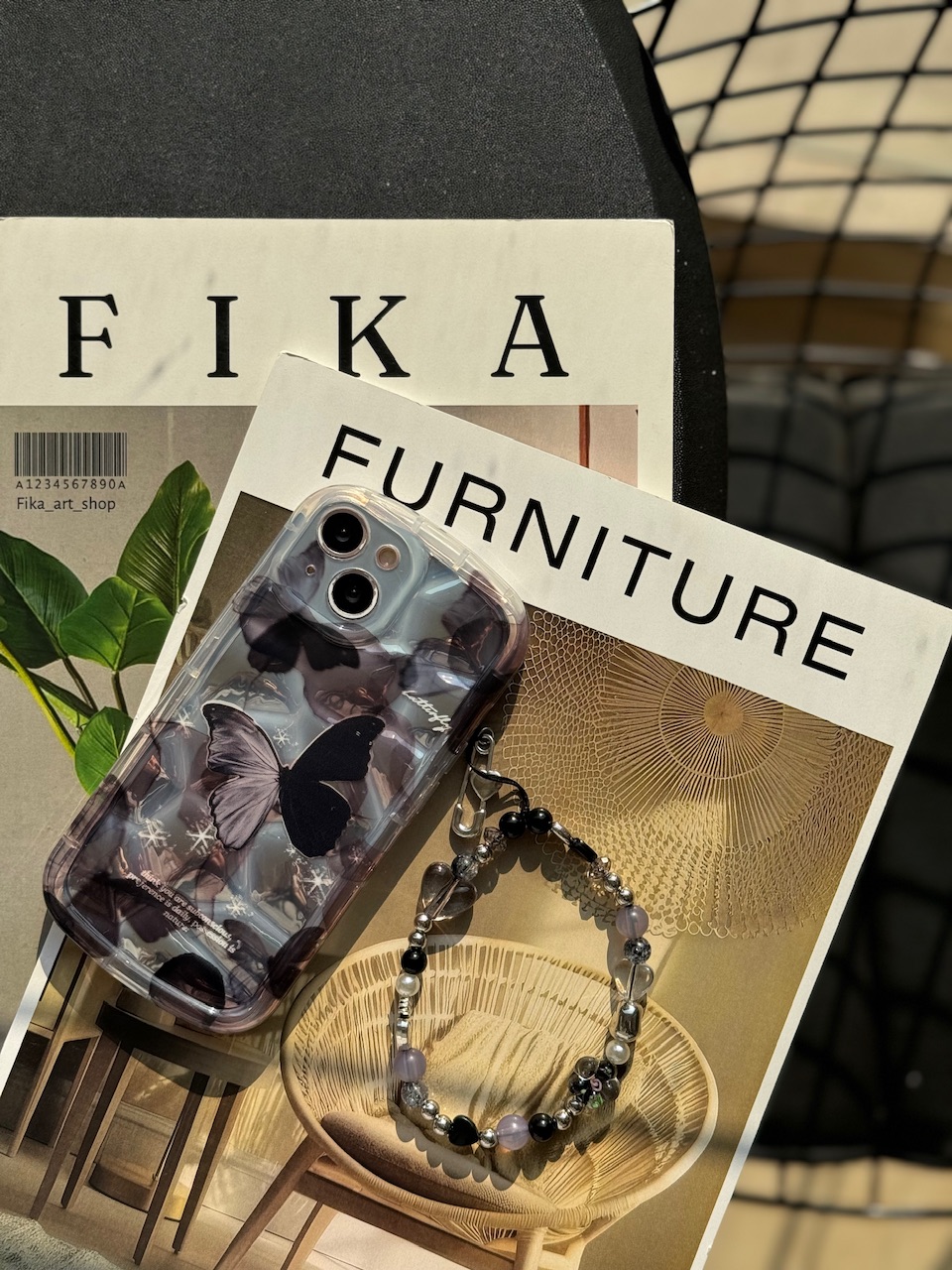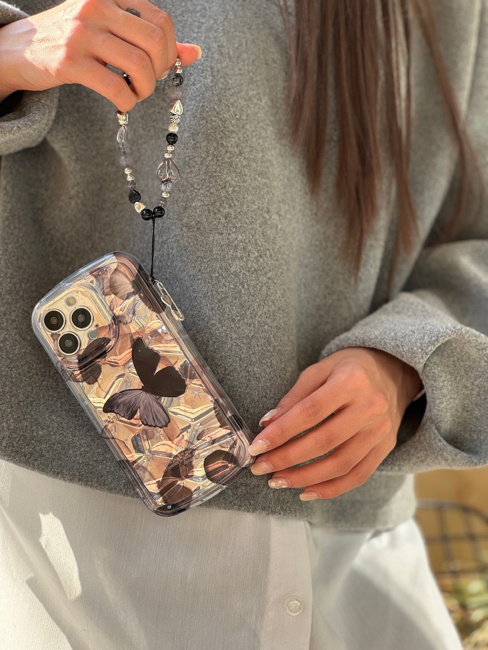قاب پروانه مشکی با آویز / ایفون / قابگوشی / قاب عمده آیفون / دراپ شیپینگ