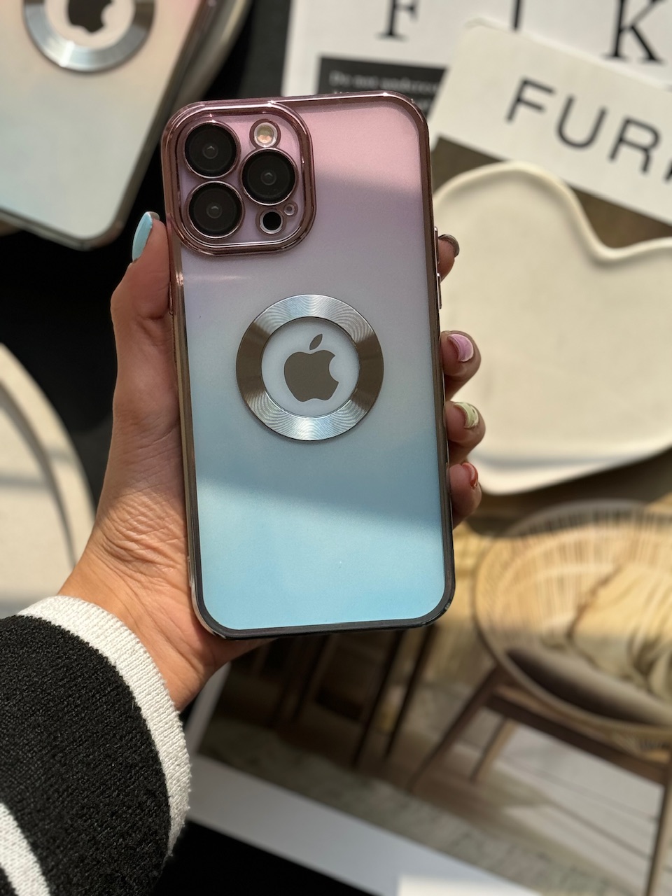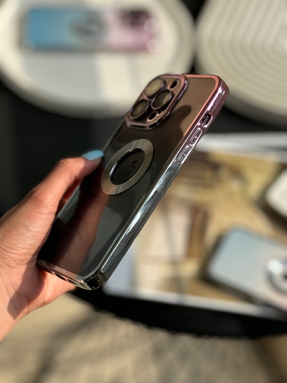 قاب صورتی آبی / با محافظ لنز گلس / دور الکترو