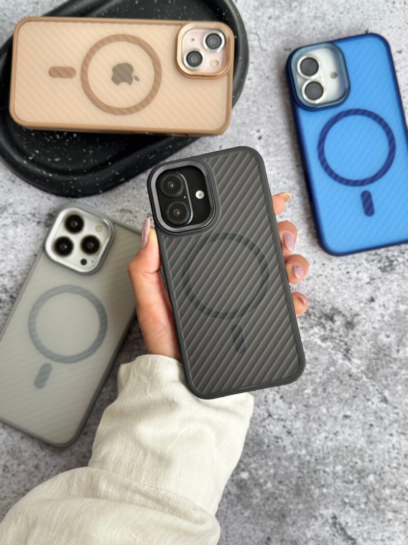 💠لنز کربن شیاردار💠مگ سیف فعال در تمامی مدل ها💠دور لنز و دکمه ها فلزی طرح کربن💠کیفیت اصلی💠مشکی / تیتانیوم / آبی / دیزرت💠دکمه های نرم💠محافظت کامل از گوشی موبایل