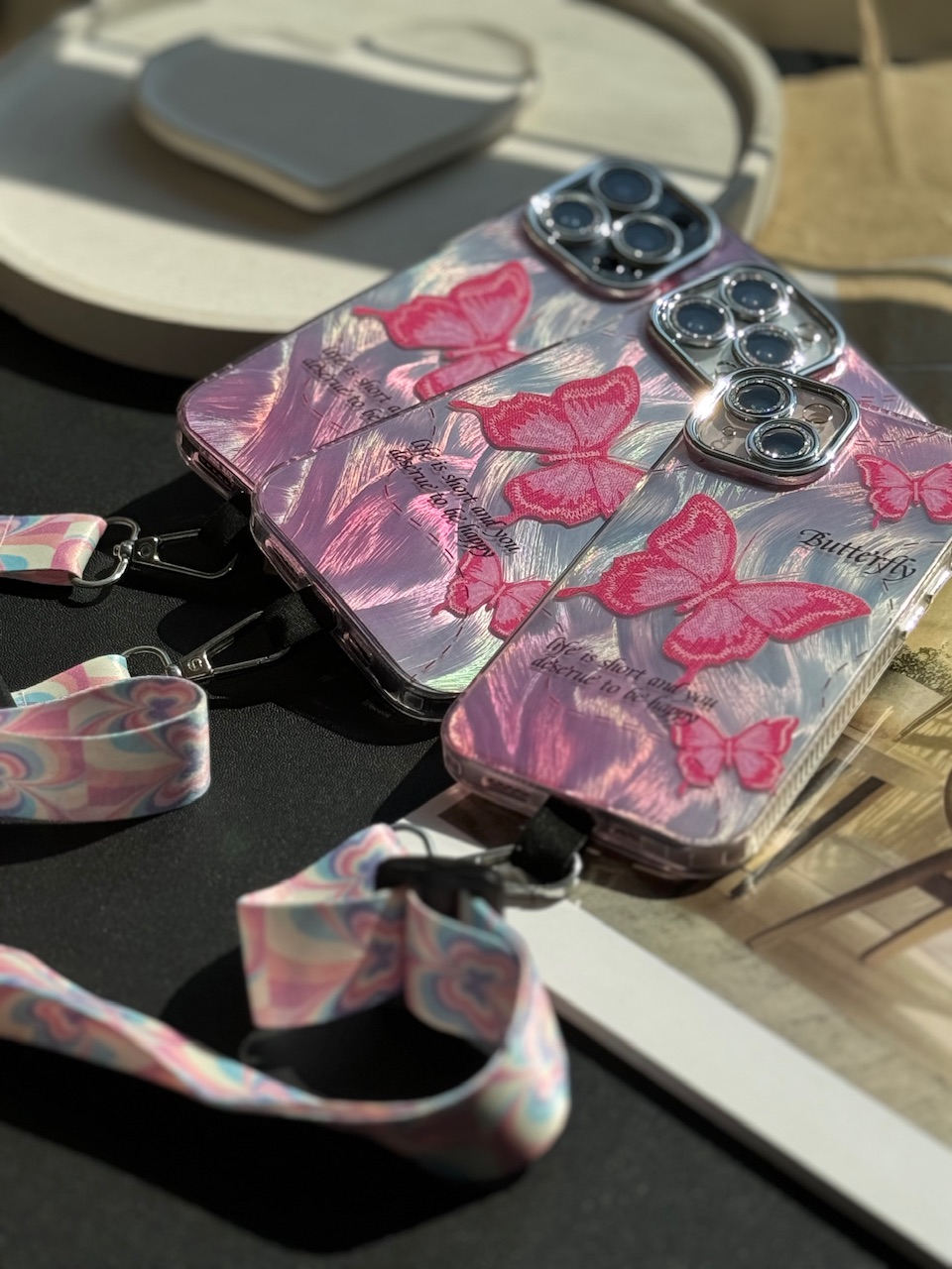 قاب پروانه صورتی / محافظ لنز گلس اکلیلی / آیفون