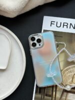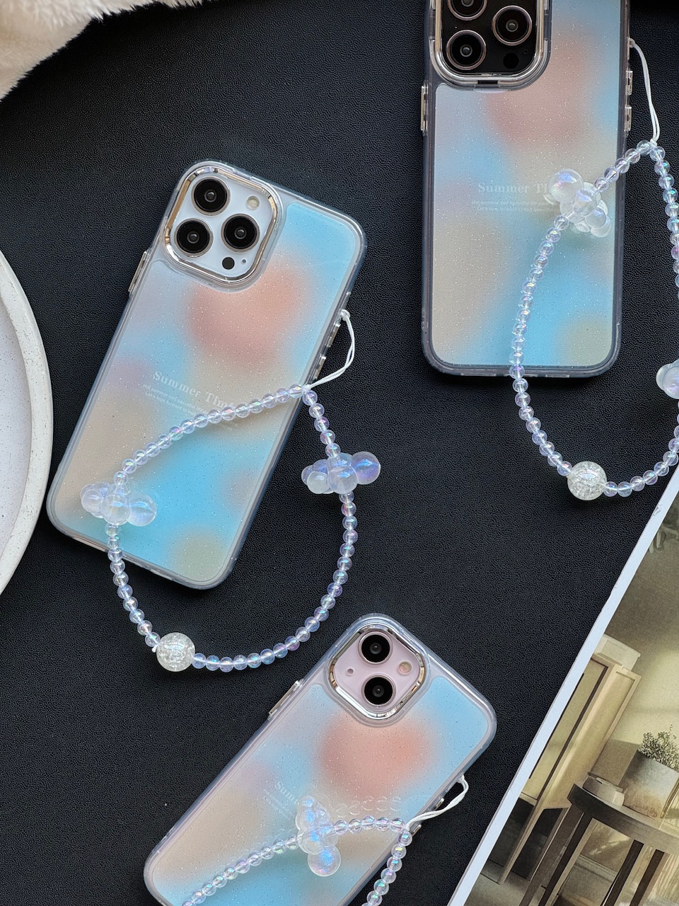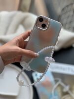 قاب اکلیلی آبی کمرنگ با آویز / قاب گوشی آیفون