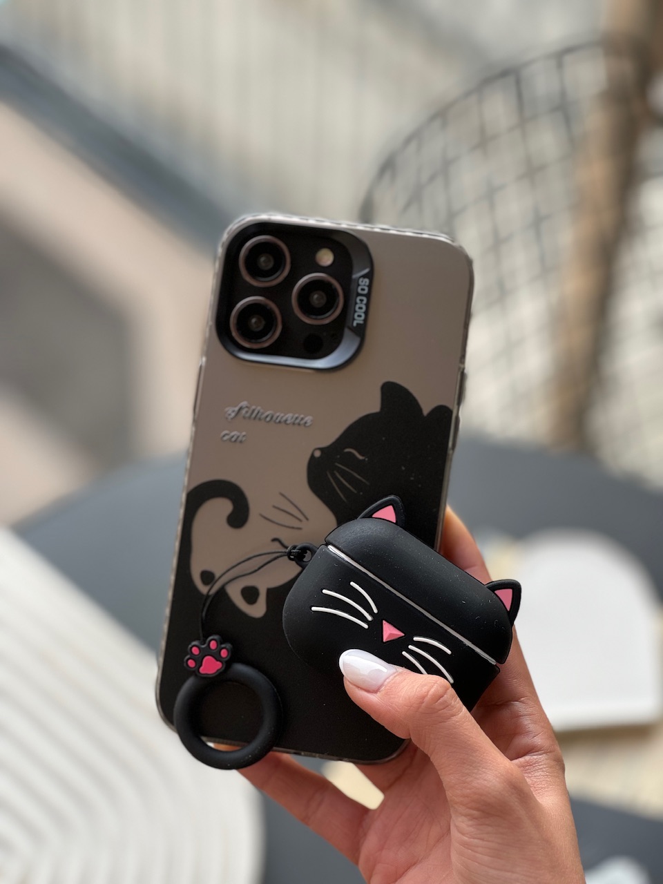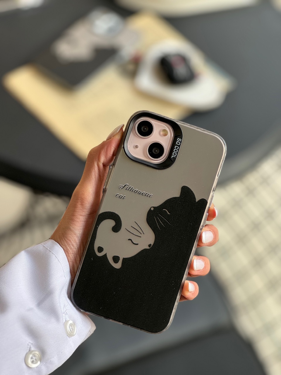 قاب گربه نقره مشکی آیفون /قاب عمده سامسونگ / قاب عمده آیفون / قاب عمده ردمی / لوازم جانبی موبایل