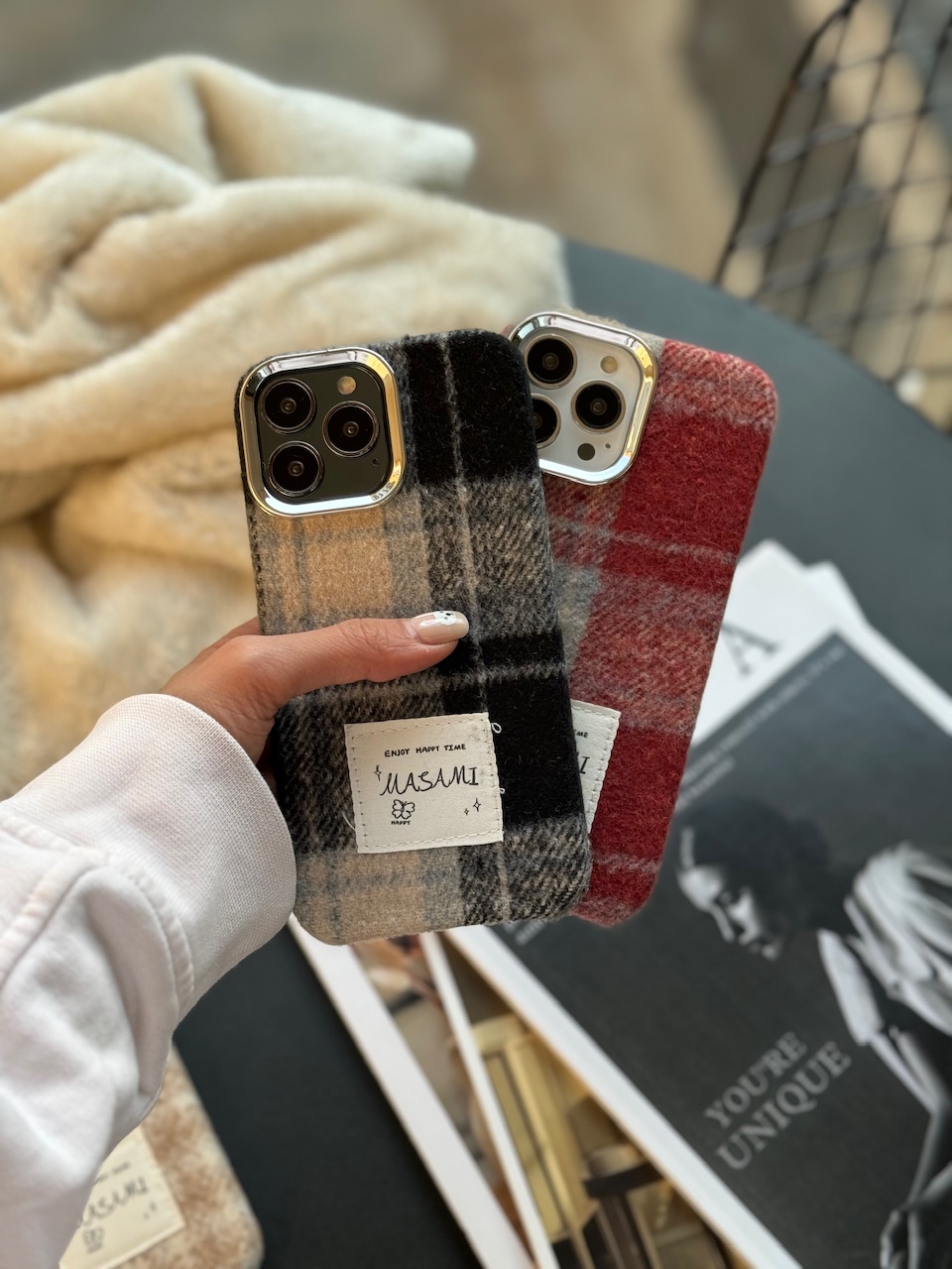 قاب پشمی چهارخونه آیفون