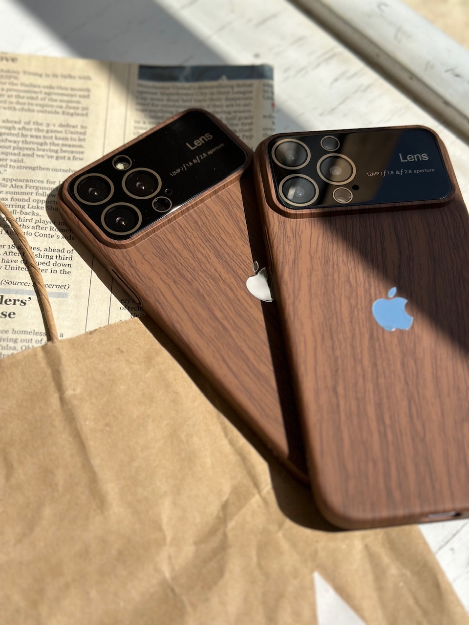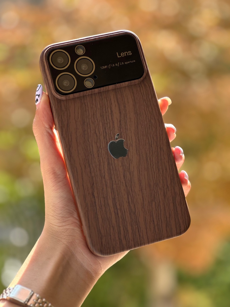 قاب پی سی طرح چوب با لوگو فلزی مخصوص گوشی های آیفون