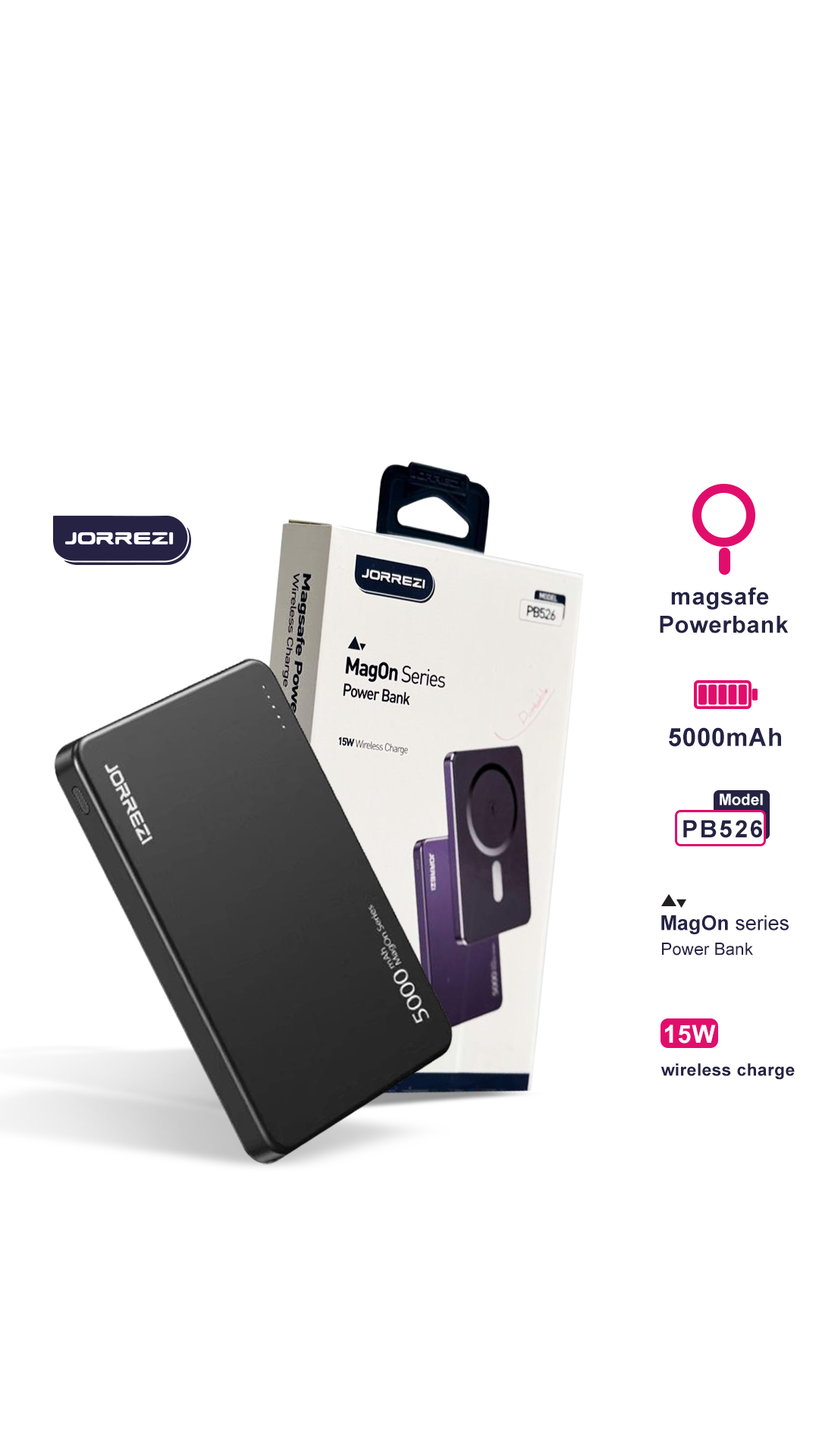 🔋 پاوربانک مگسیف ۵ هزار برند JORREZI 🔋⚡️ ویژگیهای محصول:🔹 ظرفیت 5000mAh – مناسب برای چندین بار شارژ گوشی🔹 شارژ بیسیم 15W – سرعت بالا و سازگار با مگسیف🔹 سری MagOn – طراحی شیک، سبک و قابل حمل🔹 اتصال مگنتی قوی برای شارژ ایمن و بدون کابل🔹 نشانگر برای نمایش میزان باتری🔹 دارای کابل شارژ در پک محصول