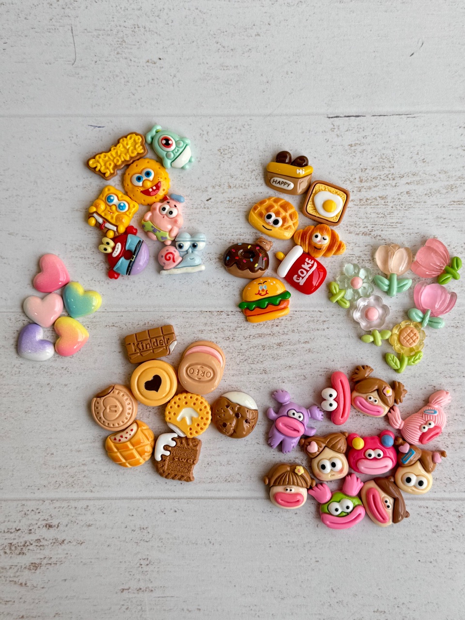 باب اسفنجی, دونات و کروسان, قلب, کیندر و ارئو, گل لاله, لب گنده |