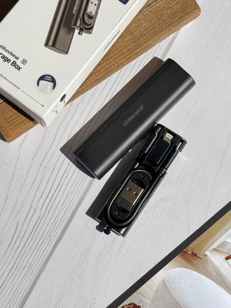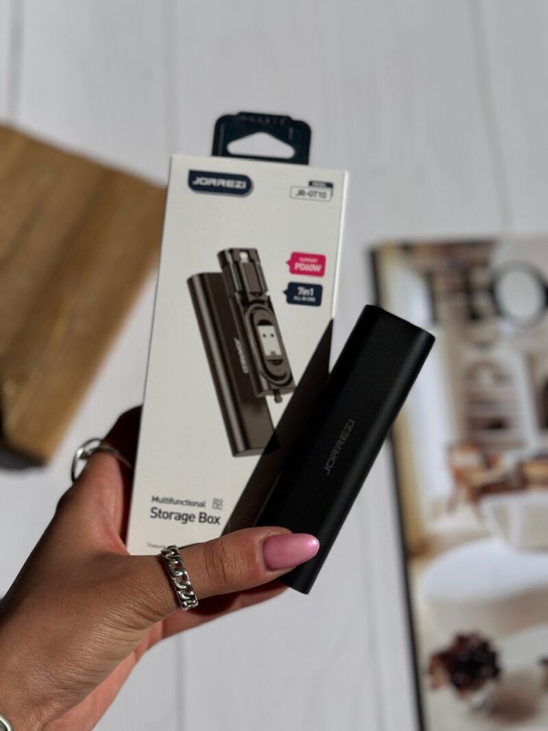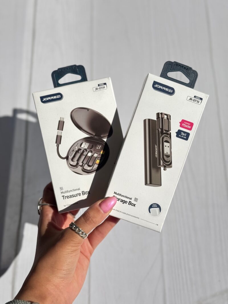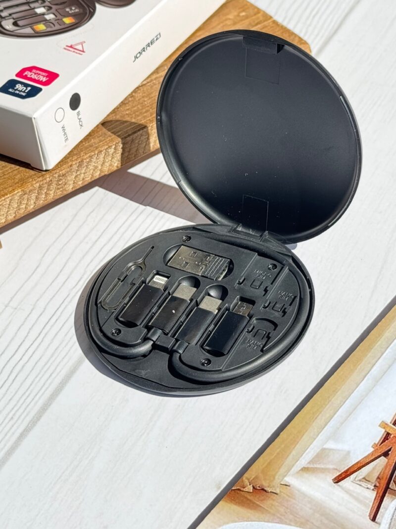پک مسافرتی کابلبرند JORREZIدو مدل : GT09 دایره ایGT10 استوانه ای••محتویات : • سوزن سیم کارت• کابل ۲۵ سانتی متری USB-C To USB-C• تبدیل USB-C to USB• تبدیل USB-C to Lightning• تبدیل USB-C to Micro USB••ویژگی ها :• طراحی مینیمال• اسلات سیم کارت و میکرو اس دی• کیفیت بالا• رنگ مشکی.