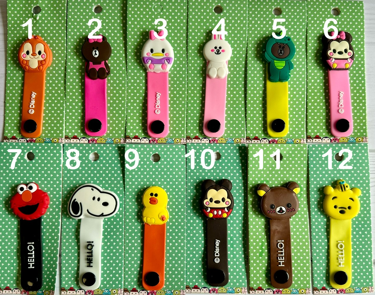 1-سنجاب, 10-میکی موس, 11-خرس قهوه ای, 12 – بامزی, 2-خرس پاپیون صورتی, 3-اردک سفید, 4-خرگوش سفید, 5-خرس لباس سبز, 6-مینی موس, 7-هپل قرمز, 8-اسنوپی, 9-اردک زرد