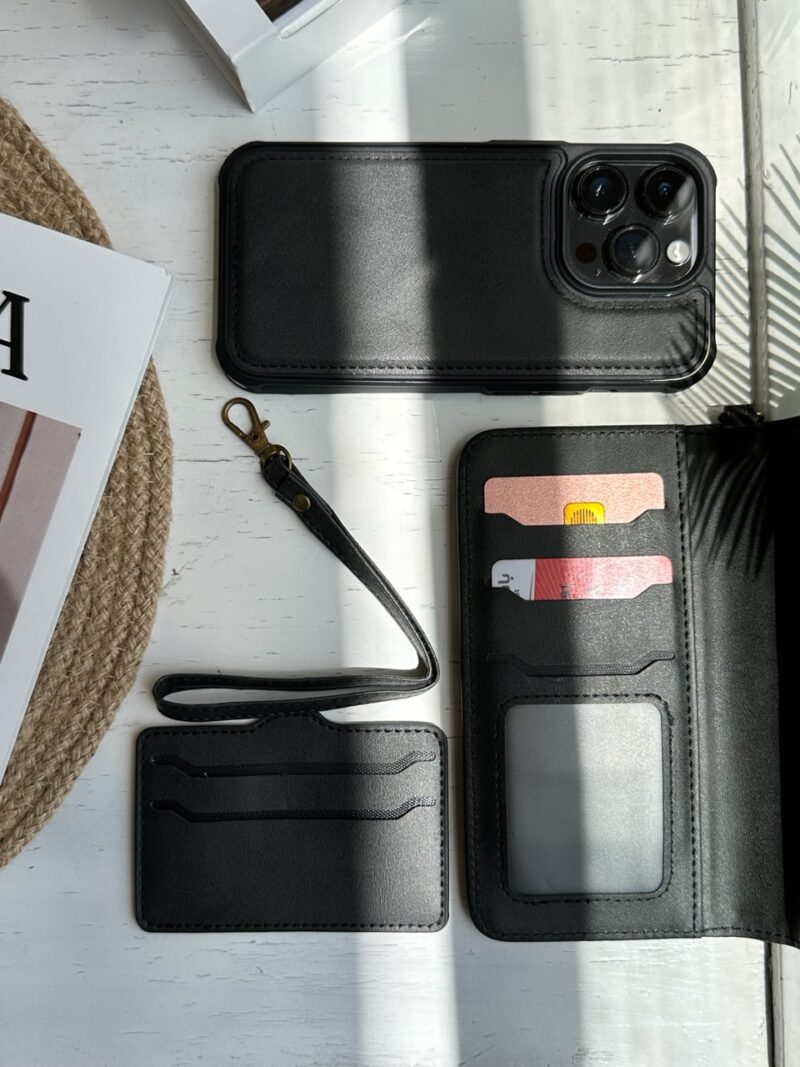 کیف چرمی JDK آیفون / جا کارتی / قاب مگنتی جدا شونده / با بند