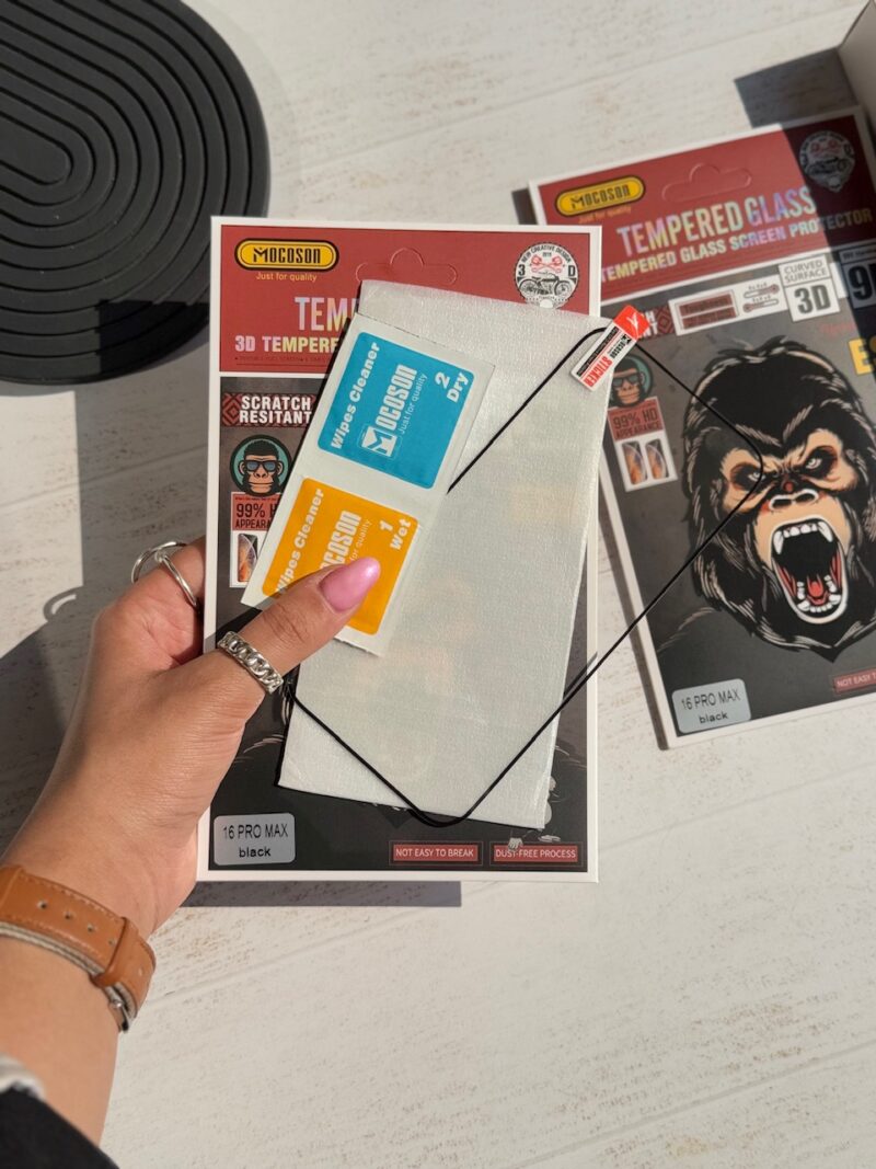 MOCOSON TEMPERED GLASSگلس شیشه ای موکوسوندارای پک مقوایی و پد1. نوع محافظ: گلس 3D خمیده (Curved Surface).2. سختی سطح: 9H (مقاومت بالا در برابر خراش).3. مقاوم در برابر خط و خش: Scratch Resistant.4. مقاومت در برابر اثر انگشت: Anti-fingerprint.5. وضوح بالا: 99% HD Appearance.6. مقاوم در برابر ضربه: Toughness (Not easy to break).لایه‌های محافظتی ۶ لایه :• لایه ضد لک (Nano Antifouling Layer).• لایه انتشار (Diffusion Layer).• لایه شیشه (Glass).• لایه بافر (Buffer Layer).• لایه محافظ (Protective Layer).• لایه جاذب (Adsorptive Layer).ضد شوک: مقاوم در برابر ضربه‌های ناگهانی.پشتیبانی از تاچ روان